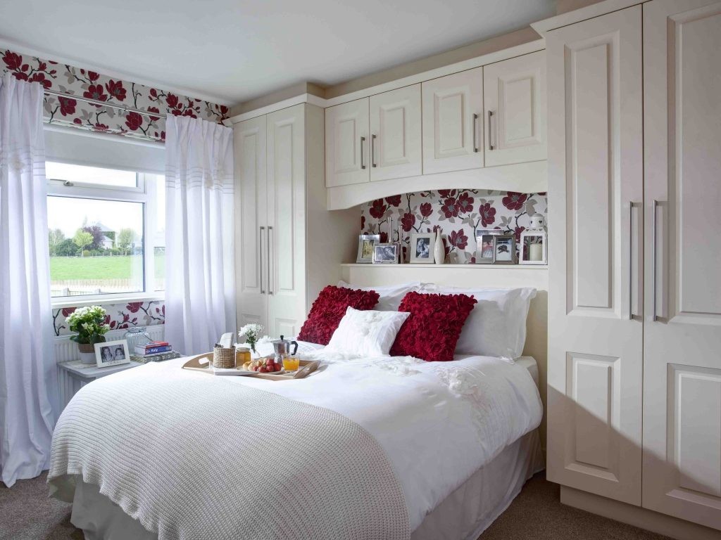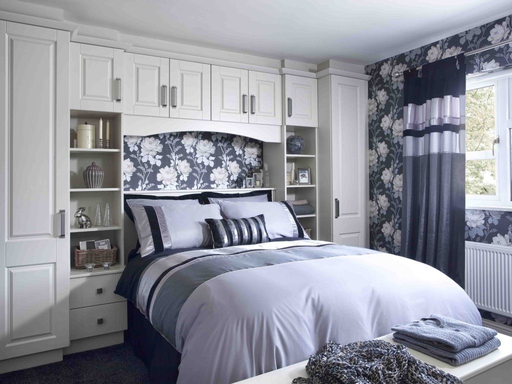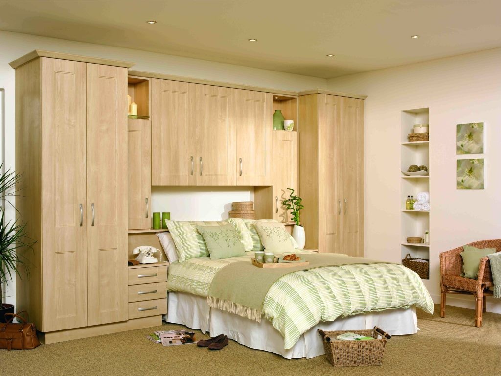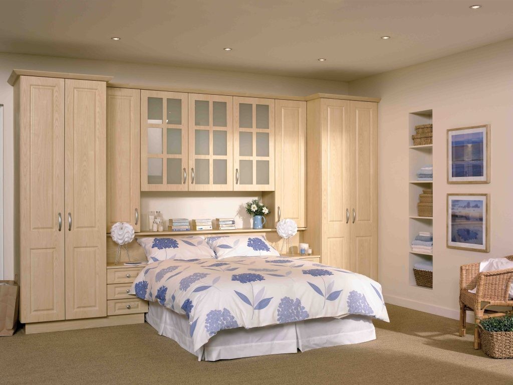 Natural décor and accessories work perfectly with this simple yet elegant shaker design. The reeded pilasters and glass doors add interest to the mid section. The end result is a very calm, understated bedroom with broad appeal.